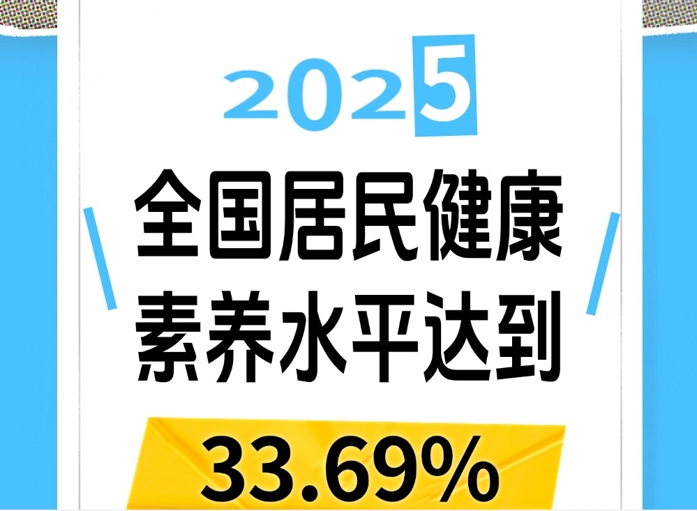 光明网讯 1月8日记者从国家卫生健康委官网获悉,2025年我国居民健康素养水平达到33.69%,比2024年提高1.82个百分点,继续保持稳步提升态势。